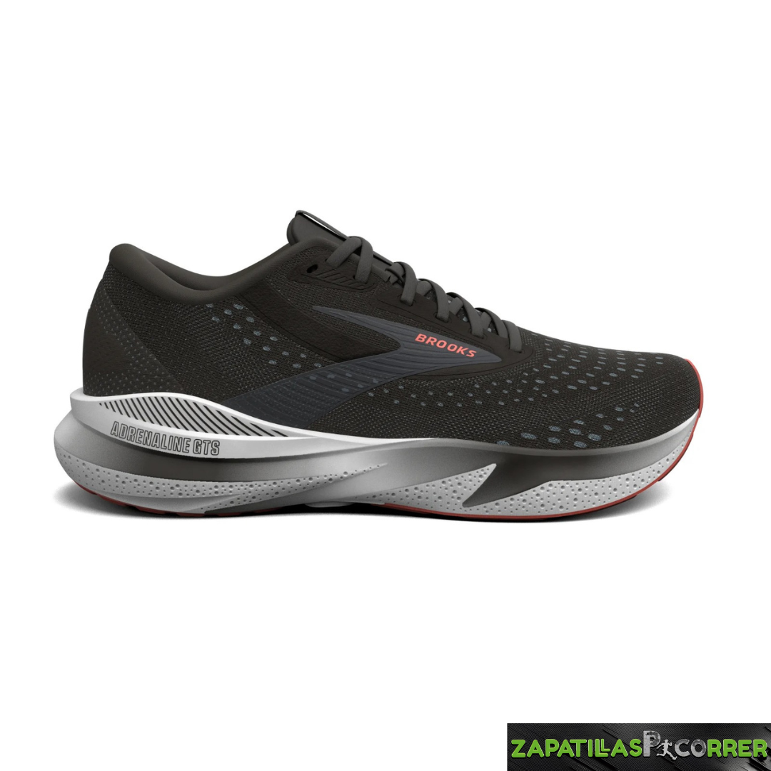 - Zapatilla de running Brooks Adrenaline GTS 24 para hombre con pisada de neutra a pronadora. Ideal para deportistas de todos los niveles que buscan confort y sujeción durante sus carreras.