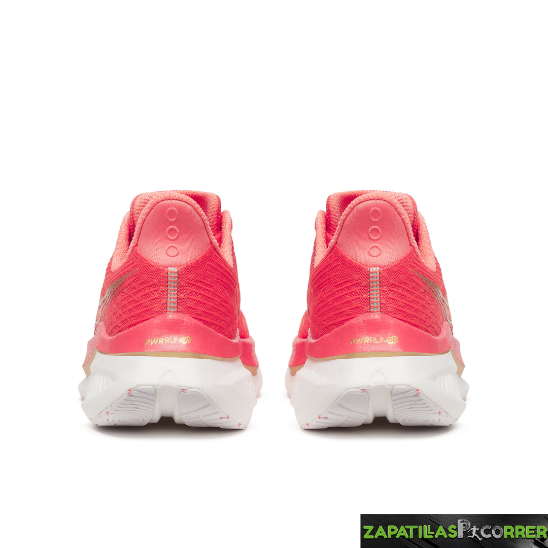 - La espuma PWRRUN PB de gran eficiencia energética rebota a cada paso combinada con una placa de nailon alada que proporciona rigidez torsional a la vez que mantiene la flexibilidad en el antepié, lo que se traduce en una pisada segura y ágil